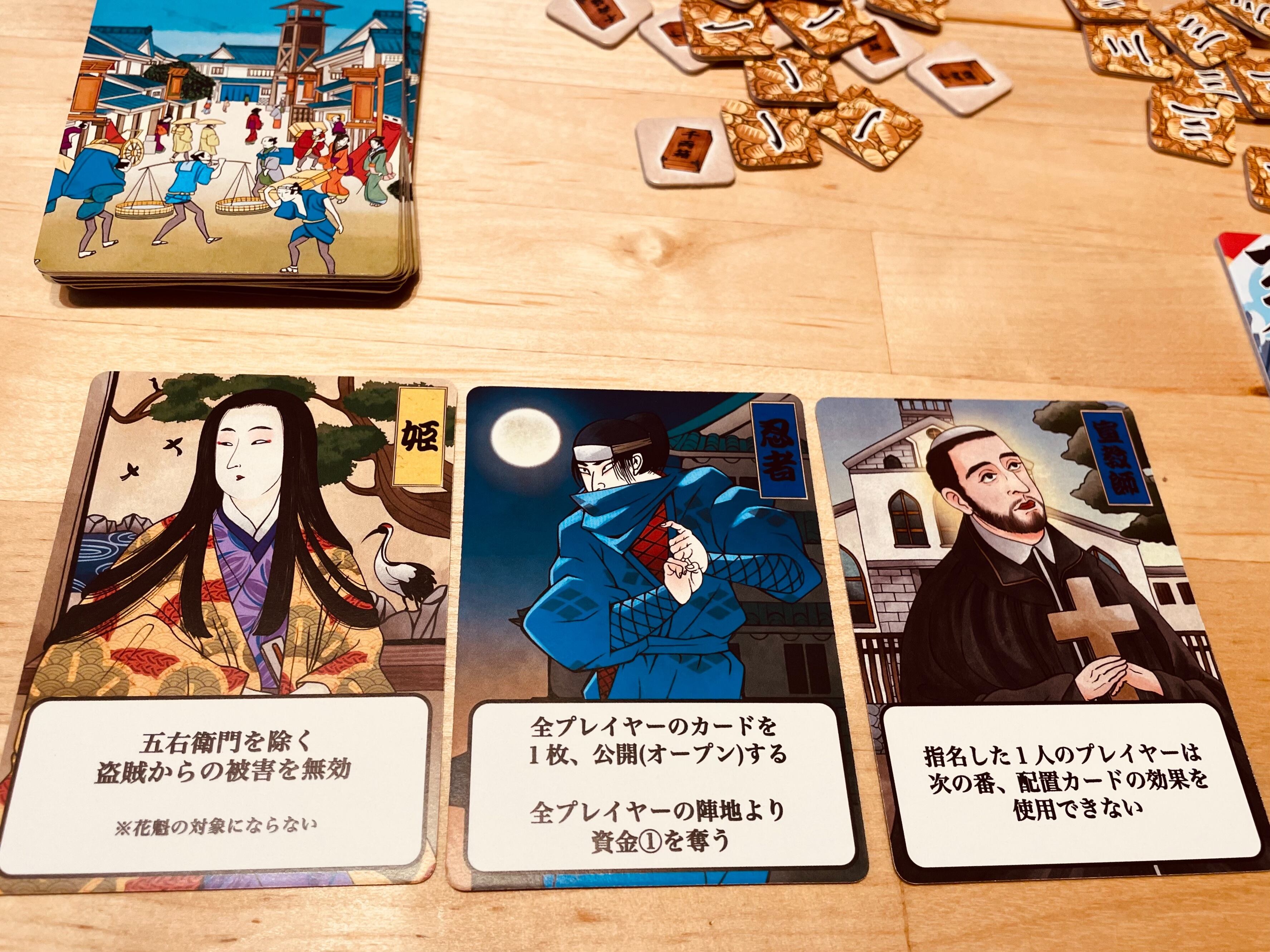「夜」のターンでは五右衛門一味がプレイヤーの陣地を襲撃し資金を奪いにきます